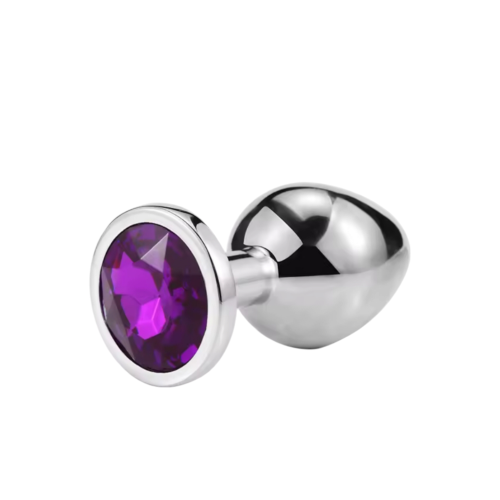 Металлическая анальная пробка серебристая с фиолетовым камушком Sexy desires размер М