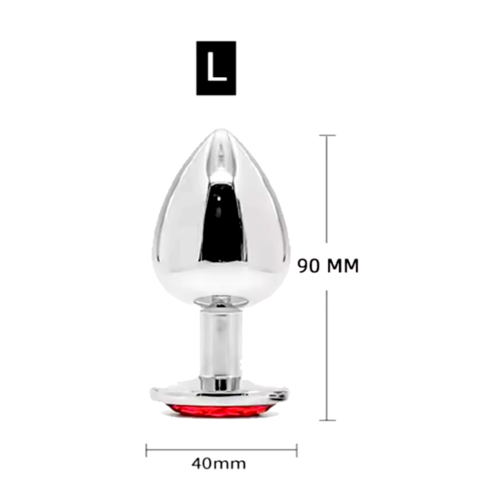 Металлическая анальная пробка серебристая с красным камушком Sexy desires размер L