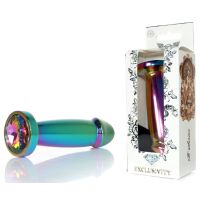 Металлический анальный плаг в виде пениса с разноцветным камушком Boys of Toys Boys Series Jewellery Multicolour размер S
