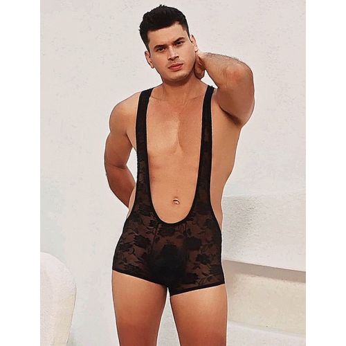 Мужской кружевной комбидресс с подтяжками Star Night черный, S