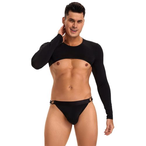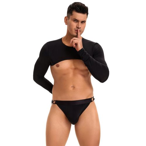 Мужской топ с длинным рукавом Star Night и трусы с открытым доступом, черные, S
