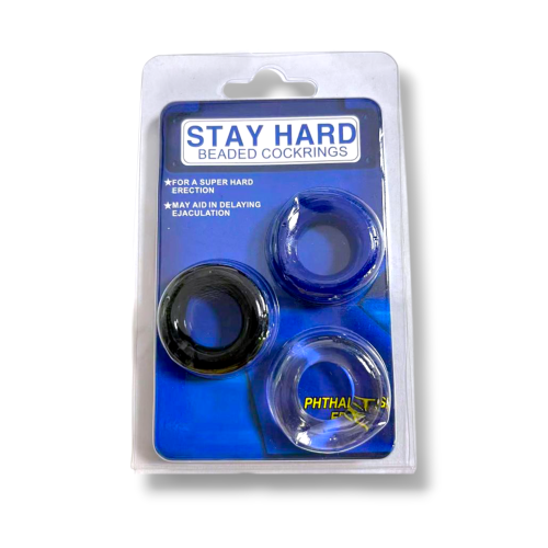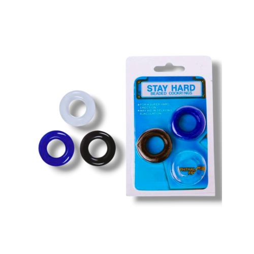 Набор 3 эрекционных колец на член черное прозрачное синее Stay Hard