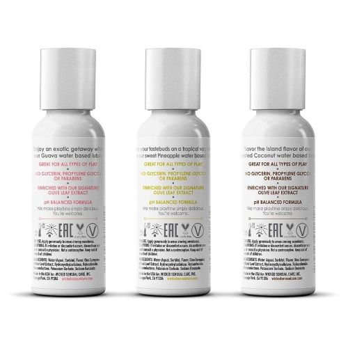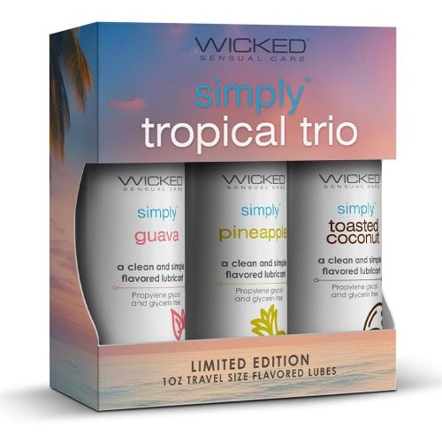 Набор оральных лубрикантов на водной основе со вкусами гуава ананаса и кокоса Wicked Simply Tropical Trio Kit