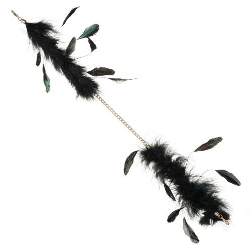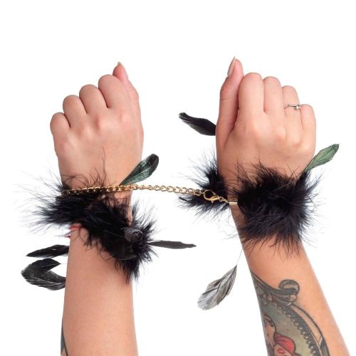 Наручники черные с длинными перьями на золотой цепочке DS Fetish