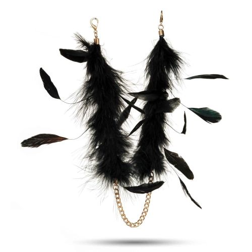 Наручники черные с длинными перьями DS Fetish на золотой цепочке