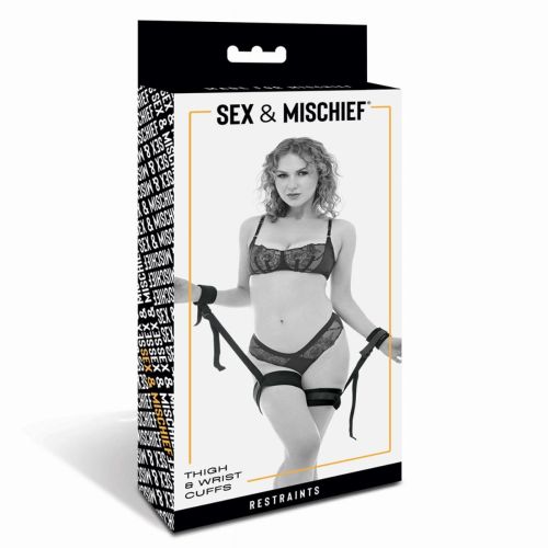 Наручники фиксаторы SEX AND MISCHIEF на запястья и бёдра, чёрные