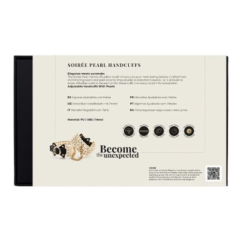 Guilty Pleasure Soirée Pearl Handcuffs — элегантные наручники двойного назначения, сочетающие моду и эротические игры. Изготовленные из мягкого веганского кожзаменителя с многорядными декоративными жемчужинами и золотистой фурнитурой, они обеспечивают регулируемую посадку, комфорт и стильный вид. Наручники могут использоваться как модный браслет или как функциональный аксессуар для БДСМ, подходят для ношения на вечерних мероприятиях или во время интимных игр. Легкие и удобные, они добавляют роскоши и женственности любому образу.