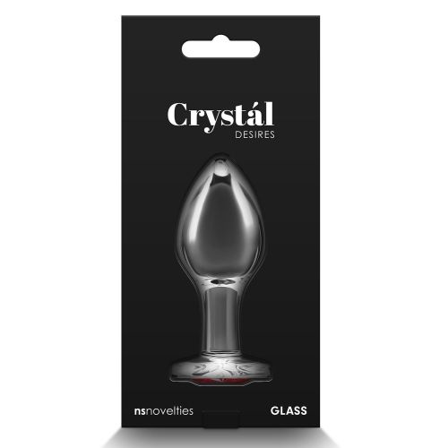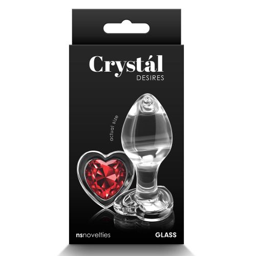 Анальная пробка стеклянная прозрачная с красным кристаллом в форме сердцем NS Novelties размер M