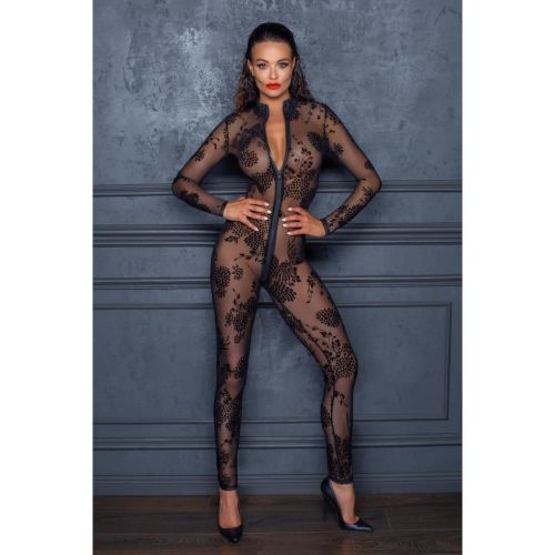 Комбинезон эротический полупрозрачный Noir Handmade M, с узором и молнией