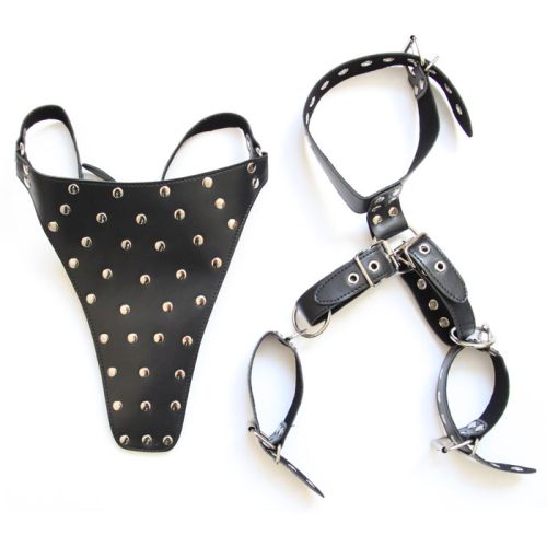 Фиксатор для рук соедененный с ошейником + трусики цвет чёрный Notabu
