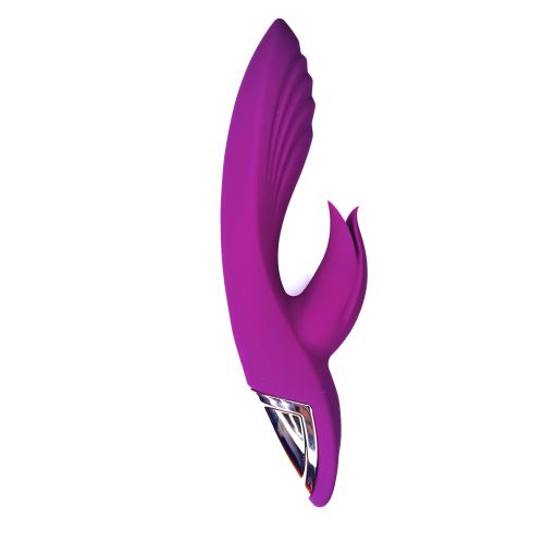 Вибромассажер "Kiss of desire" имеет фантазийную форму бутона, где вагинальная виброголовка утолщена и с волнистым плотным рельефом специально для стимуляции точки G, а клиторальный вибрирующий отросток- как тонкие и нежные лепестки. В обе головки встроен свой мощный мотор подачи вибрации, но работают они оба одновременно и переключить или сбавить вибрацию хоть на одном- невозможно.