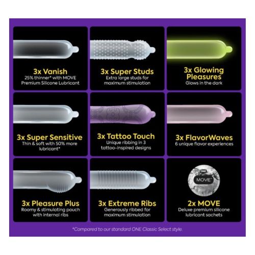 Презервативы из натурального латекса Смешанные удовольствия 8 разных стилей ONE Mixed Pleasures 24 штуки