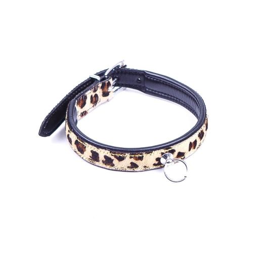 Ошейник леопардовой расцветки DS Fetish натуральный мех пони (Голландия)