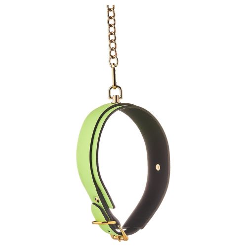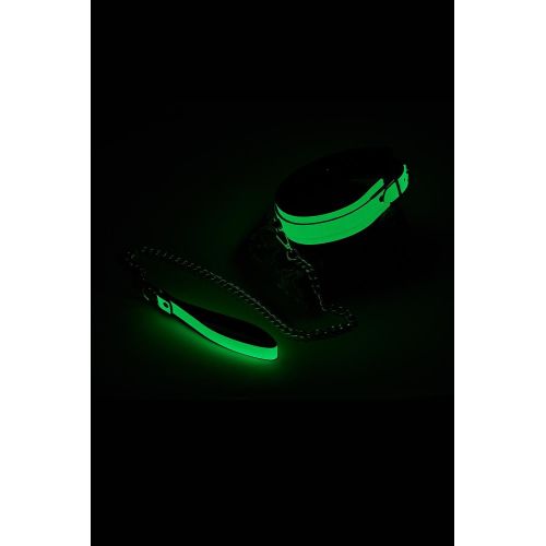 Металлический поводок с прикрепленной петлей для запястья можно легко присоединить или отсоединить с помощью зажима-мушкетона. Ошейник с поводком — это необходимая вещь для каждого любителя бондажа, и он популярен среди тех, кто любит немного ролевых игр во время своих сеансов БДСМ. Эффект свечения в темноте делает его особенно интересным!