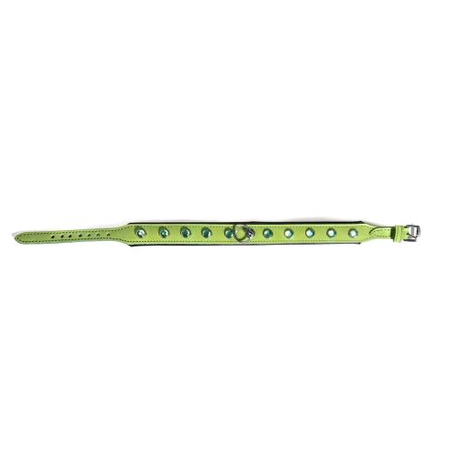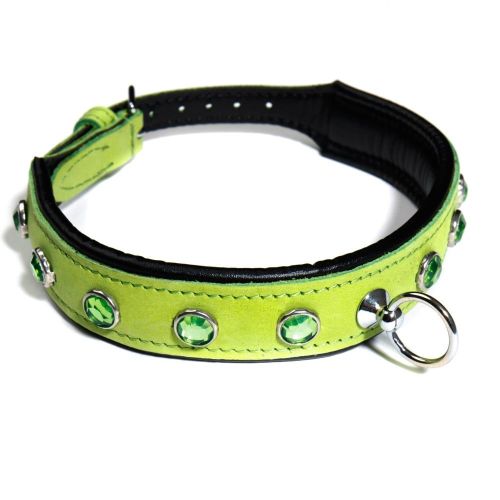 Ошейник со стразами тонкий DS Fetish кожаный, салатовый (Голландия)