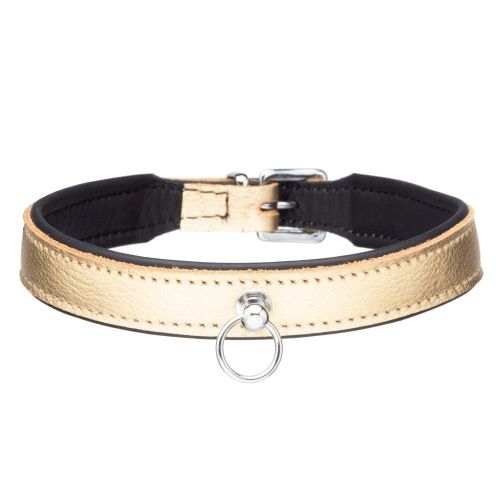 Ошейник золото с кольцом DS Fetish кожаный (Голландия)