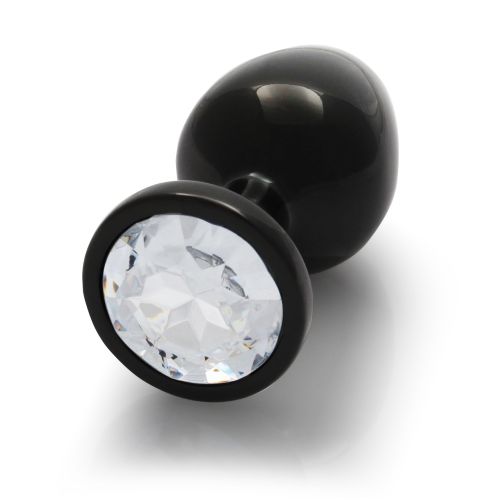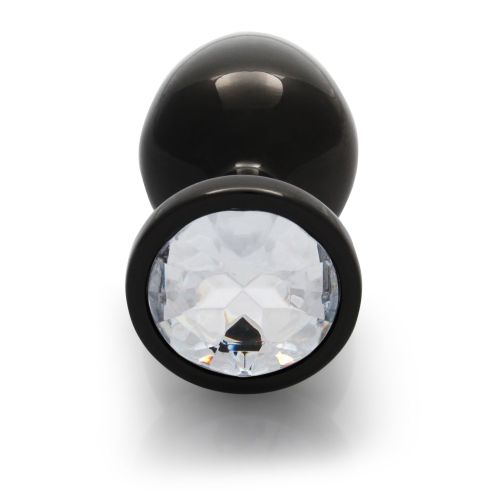 Металлическая анальная пробка с белым камнем Round Gem, размер М Ouch! черного цвета