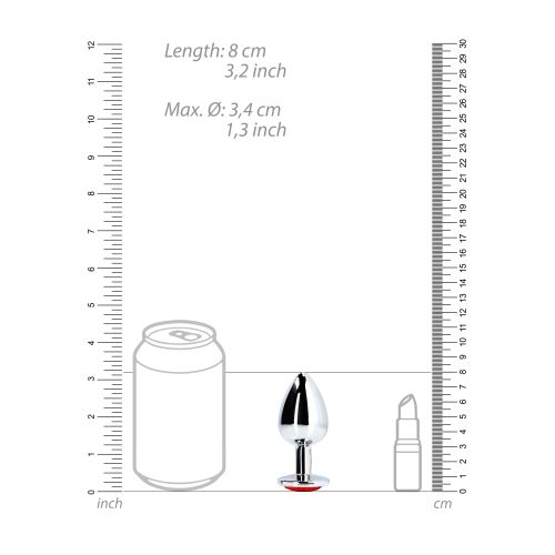 Анальная пробка серебристая с красным камнем Round Gem размер М Ouch!