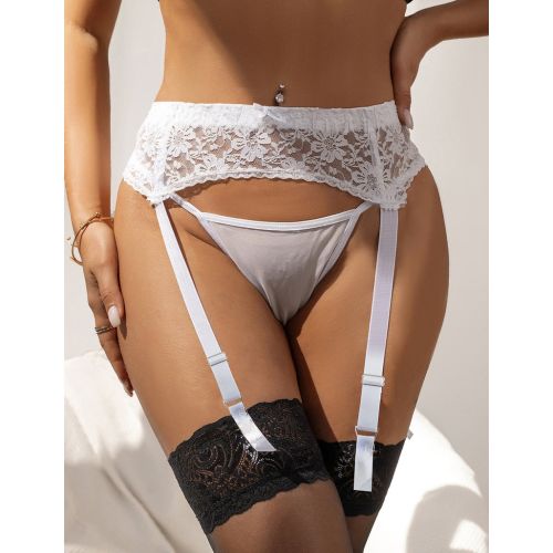 Кружевной пояс для чулок Star Night с трусиками стрингами, белый