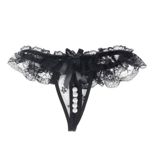 Сексуальные кружевные трусики открытый доступ украшен жемчужинами черного цвета Star Night