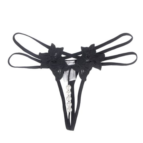 Сексуальные кружевные трусики с цветочным принтом и открытый доступ украшен жемчужинами черного цвета Star Night