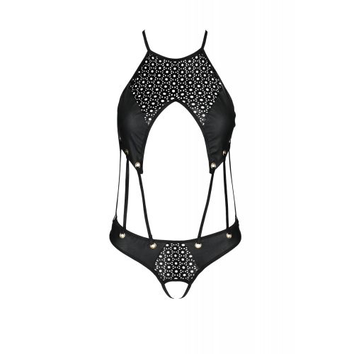 Боди с декоративными ремешками и открытым доступом, экокожа TASMINA BODY black S/M - Passion