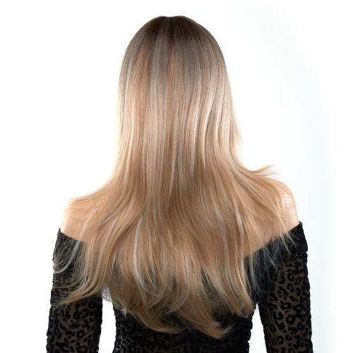 Парик блондинки с затеменнными корнями - верх русого цвета плавно переходит в блонд. Модное окрашивание омбре, сделают Ваш образ незабываемым.
