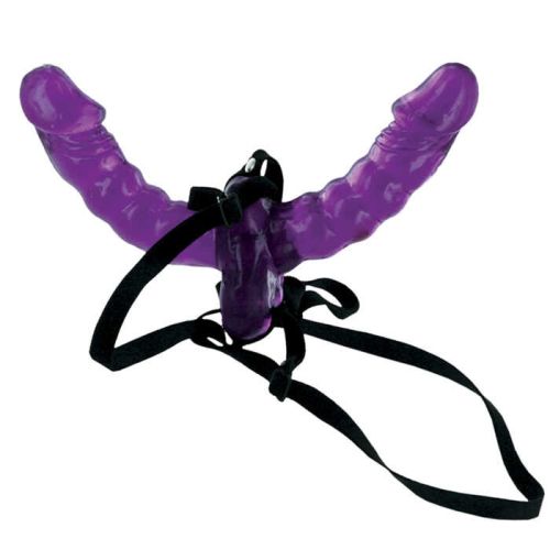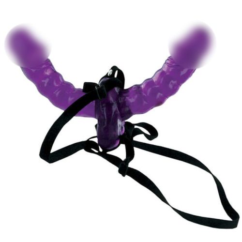 Двойной ременной страпон реалистичный фиолетового цвета Pipedream