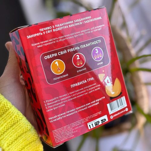Жаркое развлечение для влюбленных - Печенье с Задачами 18+! Пробудите ваши чувства и способствуйте интимной атмосфере с нашим печеньем с задачами 18+. Это не просто вкусная выпечка, а эксклюзивный способ добавить немного пикантности к вашему романтичному вечеру.