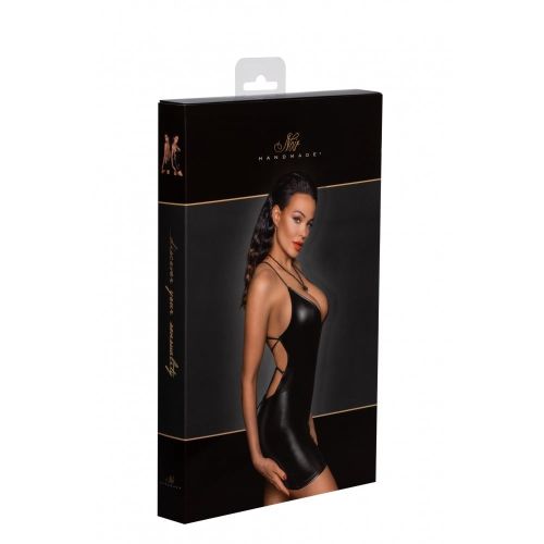 Платье с открытой спиной и глубоким декольте виниловое черное Noir Handmade размер S