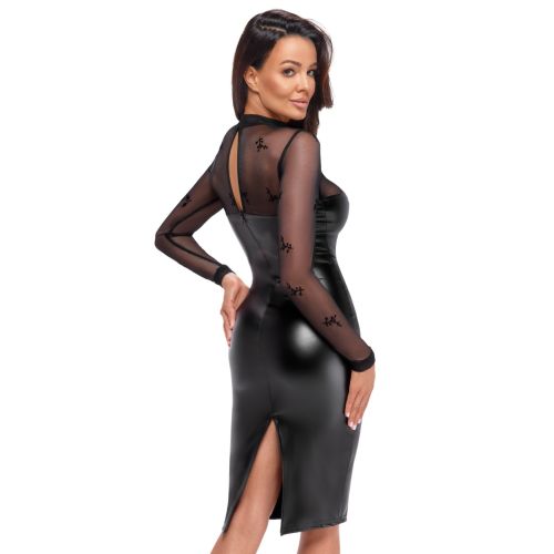 Верх из прозрачного тюля с цветочным узором добавляет изысканности и неповторимости, оставляя место для таинственности. Низ изготовлен из качественного, нежного винила. Облегающий крой платья выгодно подчеркивает ваши изгибы, придавая образу элегантность.
