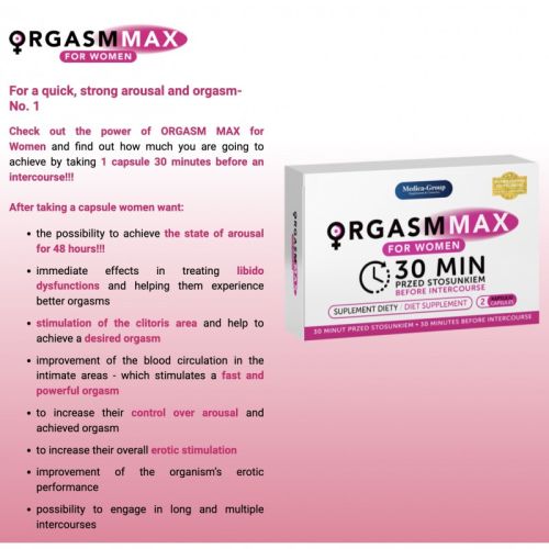 Для быстрого, сильного возбуждения и оргазма - №1. Оцените силу ORGASM MAX для женщин и узнайте, чего вы добьетесь, приняв 1 капсулу за 30 минут до полового акта! После приема капсул женщины хотят: возможность достичь состояния возбуждения на 48 часов; немедленный эффект в лечении дисфункций либидо и помогает им испытать лучшие оргазмы; стимуляция области клитора и помощь в достижении желаемого оргазма; улучшение кровообращения в интимных зонах – что способствует быстрому и мощному оргазму; повысить их контроль над возбуждением и достигнутым оргазмом; увеличить их общую эротическую стимуляцию; улучшение эротической активности организма; возможность участвовать в длительных и многократных половых актах.Orgasm Max для женщин - это добавка, которая помогает вам быстро и легко достичь оргазма, усилить возбуждение, испытать многократные оргазмы и в целом улучшить ваше либидо. До 89% респондентов рекомендуют ORGASM MAX для женщин другим. Проверьте доказанные результаты! Женщины подтверждают, что их оргазмы длиннее и сильнее.Цель ORGASM MAX для женщин - помочь вам добиться невероятно благотворного влияния на сексуальную активность, повысить либидо, повысить уровень сексуальной активности и способность испытывать оргазм без одновременного повышения артериальное давление!ORGASM MAX для женщин - в значительной степени - направлен на поддержание нормального кровообращения, особенно в области таза и интимных органов. Таким образом, добавка может способствовать усилению состояния эротического возбуждения и продлению времени его возникновения. Регулярное использование ORGASM MAX for Women может привести к стойкому положительному эффекту в лечении эротических дисфункций. Для достижения наилучших результатов после применения ORGASM MAX for Women рекомендуется сексуальная стимуляция.Либидо, половое влечение (импульс) («похоть» на латыни) – психическое проявление возбуждения, зарождающееся глубоко в организме и направленное на его удовлетворение. сексуальные потребности. Он представляет собой мотивационные факторы, обусловленные биологической структурой организма, которые побуждают формы поведения, направленные на удовлетворение потребностей. Согласно Гансу Гизе, сексуальное влечение - это избирательное состояние готовности принять партнера в области его или ее сексуальности. Концепция категории либидо Карла Густава Юнга шире; в ней либидо воспринимается как общая психическая энергия. По Юнгу, либидо направлено либо вовне (экстравертное либидо), либо внутрь (интровертное либидо). Оба механизма, интроверсия и экстраверсия, естественны и могут быть обнаружены у каждого. Сознательная экстравертная установка дополняется бессознательной интровертной установкой и наоборот. Бессознательная часть либидо (интроверсия в случае экстраверсии, экстраверсия в случае интроверсии) составляет нашу личную тень. цель или кульминация полового акта, акта мастурбации или другой формы сексуального поведения. Оргазм сопровождается рядом характерных физиологических реакций, таких как сокращения женского влагалища или дна матки. Непосредственным результатом оргазма является сексуальное удовлетворение, проявляющееся в расслаблении тела, уменьшении застойных явлений в половых органах и психическом состоянии благополучия и эмоциональной удовлетворенности.Рекомендуемая
