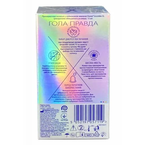 Презервативы увеличенного размера из натурального каучукового латекса DUREX Invisible XL 12 штук