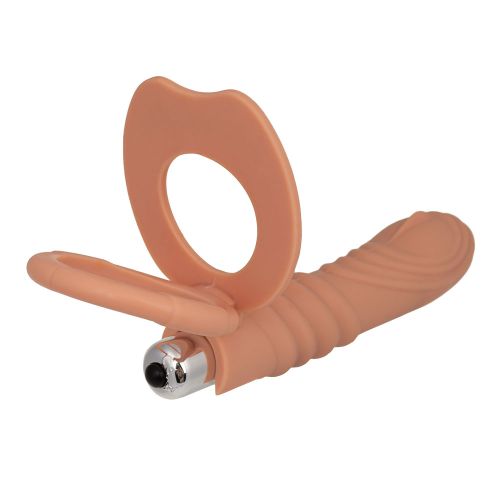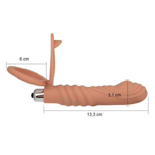Насадка на член для двойного проникновения с вибрацией и креплением к пенису и мошонке XESE PS06V10
