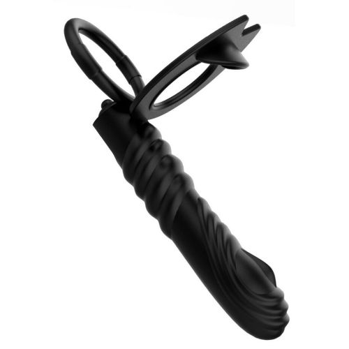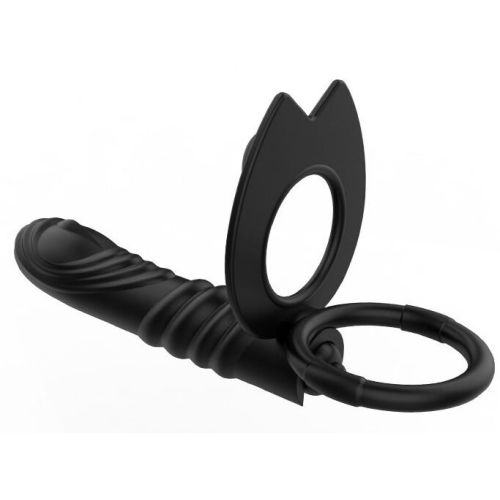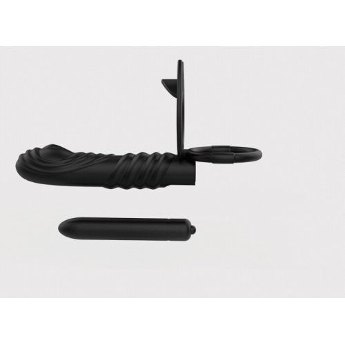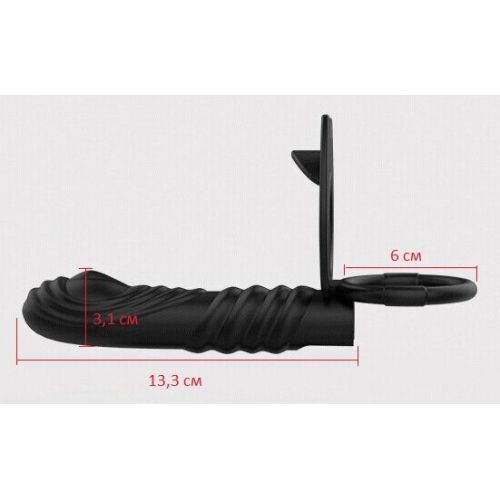 Насадка на член для двойного проникновения с вибрацией черная XESE
