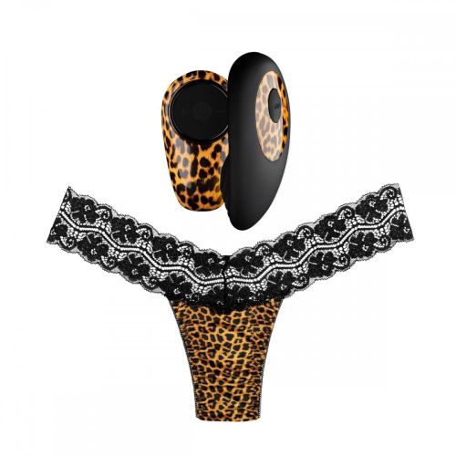 Вибратор в трусики со стрингами в комплекте, черный с леопардовым принтом.