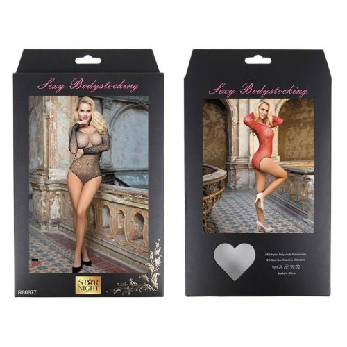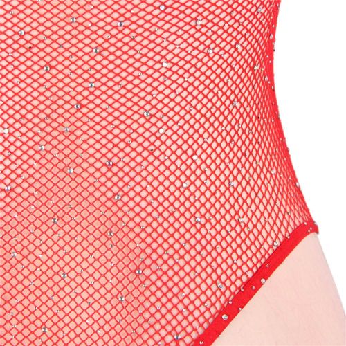 Боди в сетку Star Night Sparkle с длинными рукавами и открытыми плечами, красный