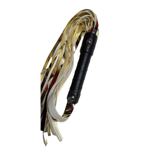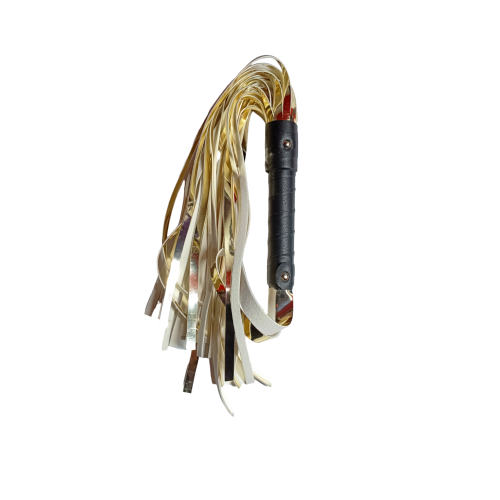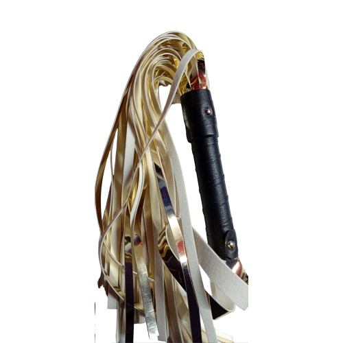 Выполненный в черно-золотой гамме, этот флоггер из искусственной кожи выделяется на фоне традиционных бондажных аксессуаров своим изысканным видом. Лаковые "хвосты" будут мерцать в унисон с каждым ударом, жаля и разогревая чувствительную кожу.