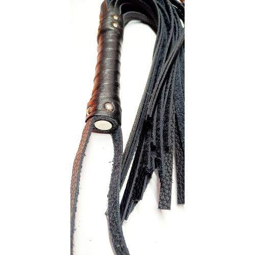 Флогер БДСМ комбинированный с кожаной ручкой черного цвета Easy Life BDSM Desire