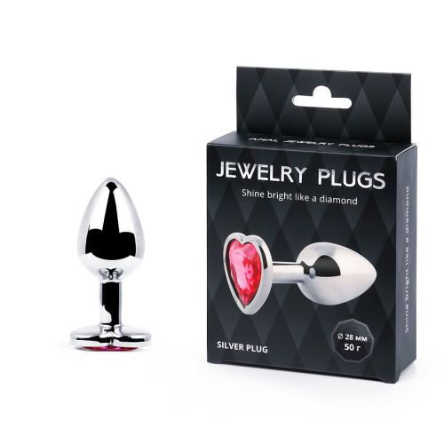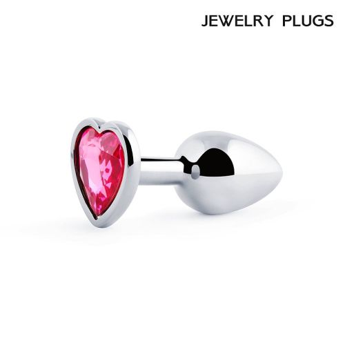 Втулка анальная металлическая с розовой стразой в форме сердца Notabu L 70 мм D 28 мм