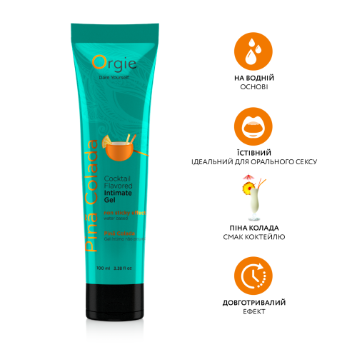 Оральный лубрикант Orgie – это идеальное решение для придания новых ощущений вашей интимной жизни. Это единственный продукт, созданный специально для орального контакта, который обеспечивает нежные увлажненные ощущения и разнообразит вашу сексуальную жизнь. С настоящим тропическим вкусом коктейля Пина Колада, он добавит экзотики в вашу любовную игру. Уникальная технология производства делает его безопасным и комфортным в использовании.