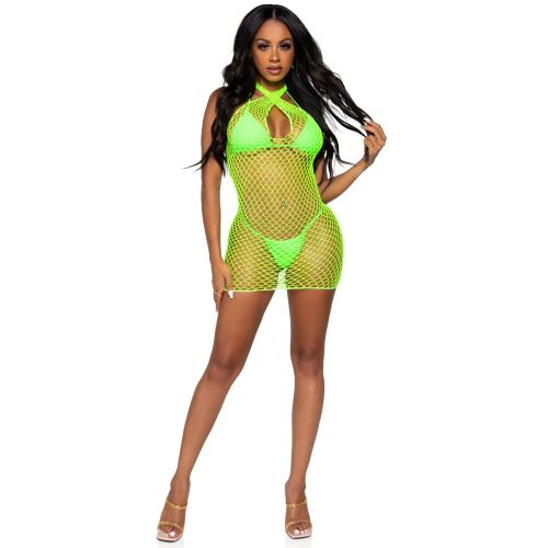 Сексуальное платье в крупную сетку Leg Avenue, OS, ярко-зеленое