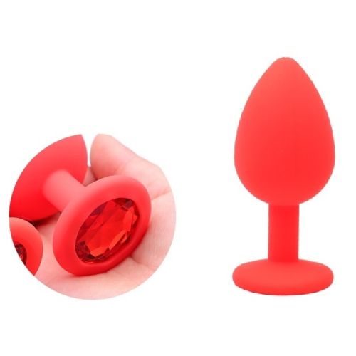 Силиконовая анальная пробка с кристаллом красного цвета SKN KSIL 24S размер S