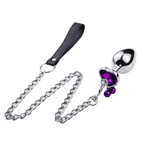 Анальная пробка с кристаллом колокольчиком и хвостиком-поводком Размер M