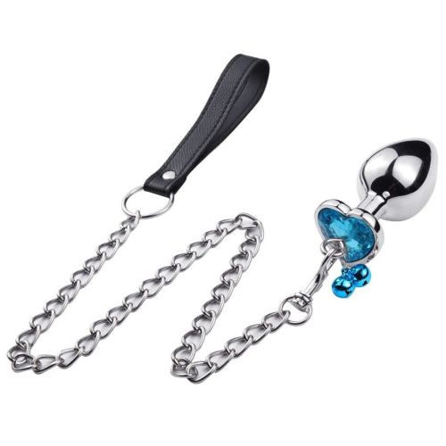 Анальная пробка с кристаллом колокольчиком и с хвостиком-поводком Размер