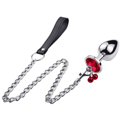 Пробка для анала с кристаллом колокольчиком и хвостиком-поводком Размер L