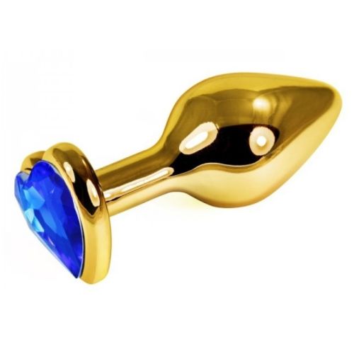 Анальная пробка металлическая золотистая с синим стразом в форме сердца SKN Размер S