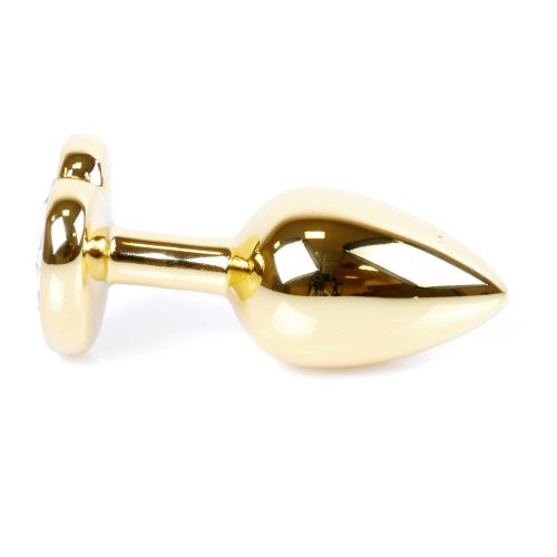 Анальная пробка металлическая золотистая с салатовым стразом в форме сердца SKN Размер S