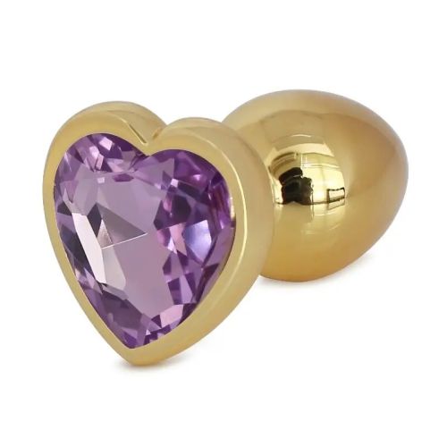 Анальная пробка металлическая золотистая с сиреневым стразом в форме сердца SKN Размер S
