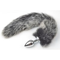 Анальная пробка металлическая с меховым темно серым хвостом SKN-L06